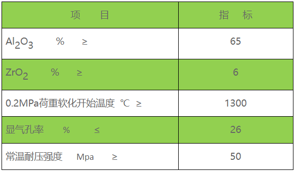 半锆质竖炉导风墙异型砖理化指标