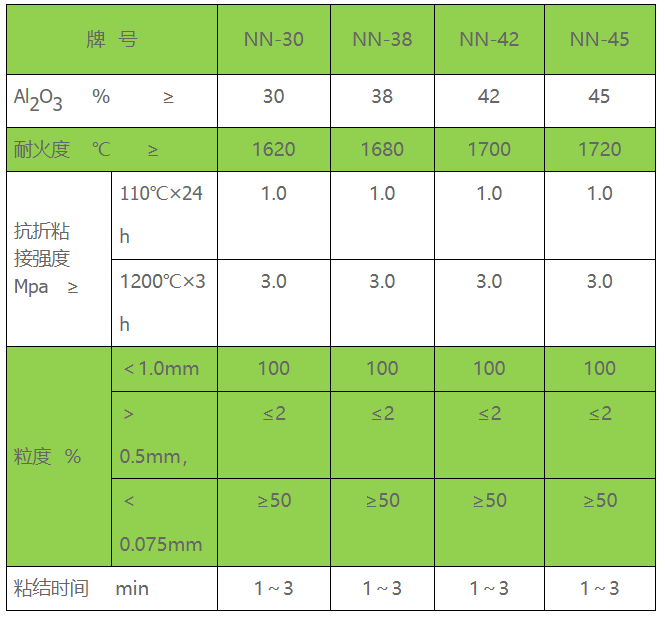 粘土耐火泥浆理化指标