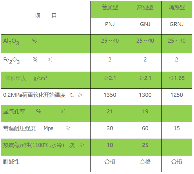高强耐碱砖RK-H是由低铝耐火粘土或低铝叶腊石为主要原料,先经过制粒、制粉工序后,再添加几种添加剂,按一定比例混合后,经压制成型,高温烧成的制品。高强耐碱砖RK-H在水泥窑系统中具有耐碱侵蚀特性,在高温下会与K+、Na+碱金属氧化物反应生成高粘度的液相,形成一层釉化状保护层,覆盖在高强耐碱砖RK-H的表面堵塞表面气孔,以阻止碱金属熔融物的渗透和侵蚀,起到耐碱抗侵蚀的目的。按理化指标分为普通型、高强型和隔热型三个牌号,因耐碱砖强度≥60MPa,强度大而称为高强耐碱砖RK-H。主要用于水泥窑预热器、分解炉、三次风管、回转窑、水泥窑用耐火砖等部位。