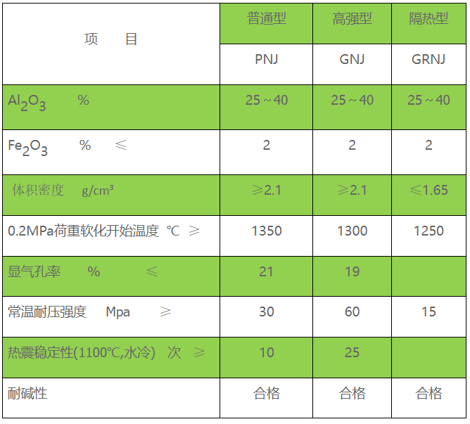 耐碱砖理化指标