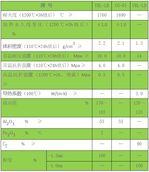 高炉用无水压入泥浆(或非水系压入料)是以优质高铝矾土熟料、刚玉、碳化硅等耐火原料为主要原料,用酚醛树脂做结合剂制成的特种压入料或压入泥浆。主要用于高炉冷却壁与炉壳之间(牌号:YRL-LB、CG-01)和炉底封板下与碳质捣打料之间(牌号:YRL-LD)填充。