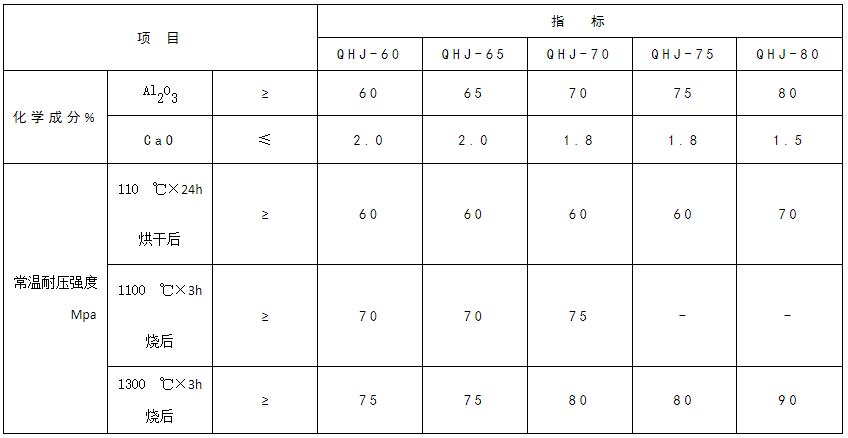 球团回转窑用(耐火)浇注料理化技术指标